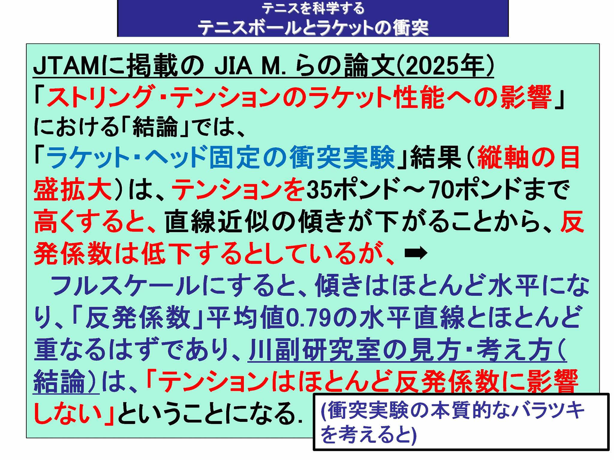 ・Journal of Theoretical and Applied Mechanics (JTAM)は、査読付きの信頼性のある高い学術誌ですし、ここで取り上げた「ストリング・テンションとテニスラケットの性能」という学術論文*の「反発係数に関する実験データ」も信頼性のある貴重なものですが、著者も査読者も「反発係数とラケットの性能(反発力性能)との関係」には誤解があるようです.