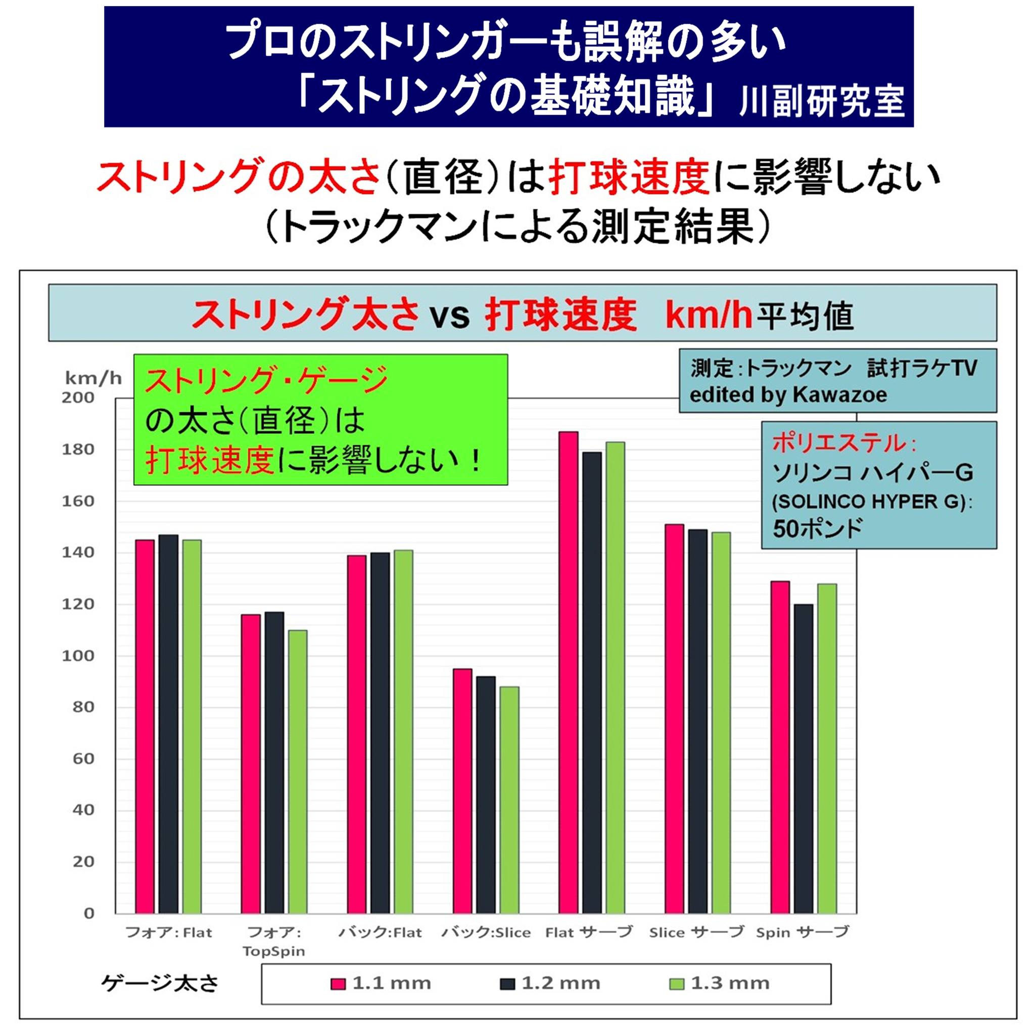 :ストリングの太さ(直径)は打球速度に影響しない (トラックマンによる測定結果)