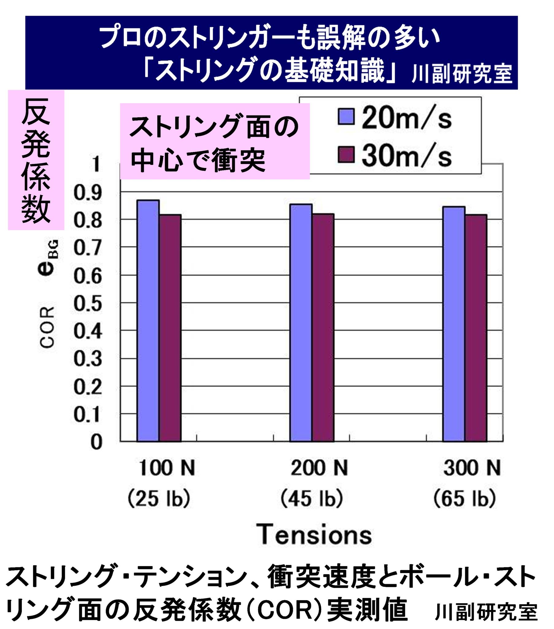 ストリング・テンション、衝突速度とボール・ストリングの反発係数(COR)実測値
