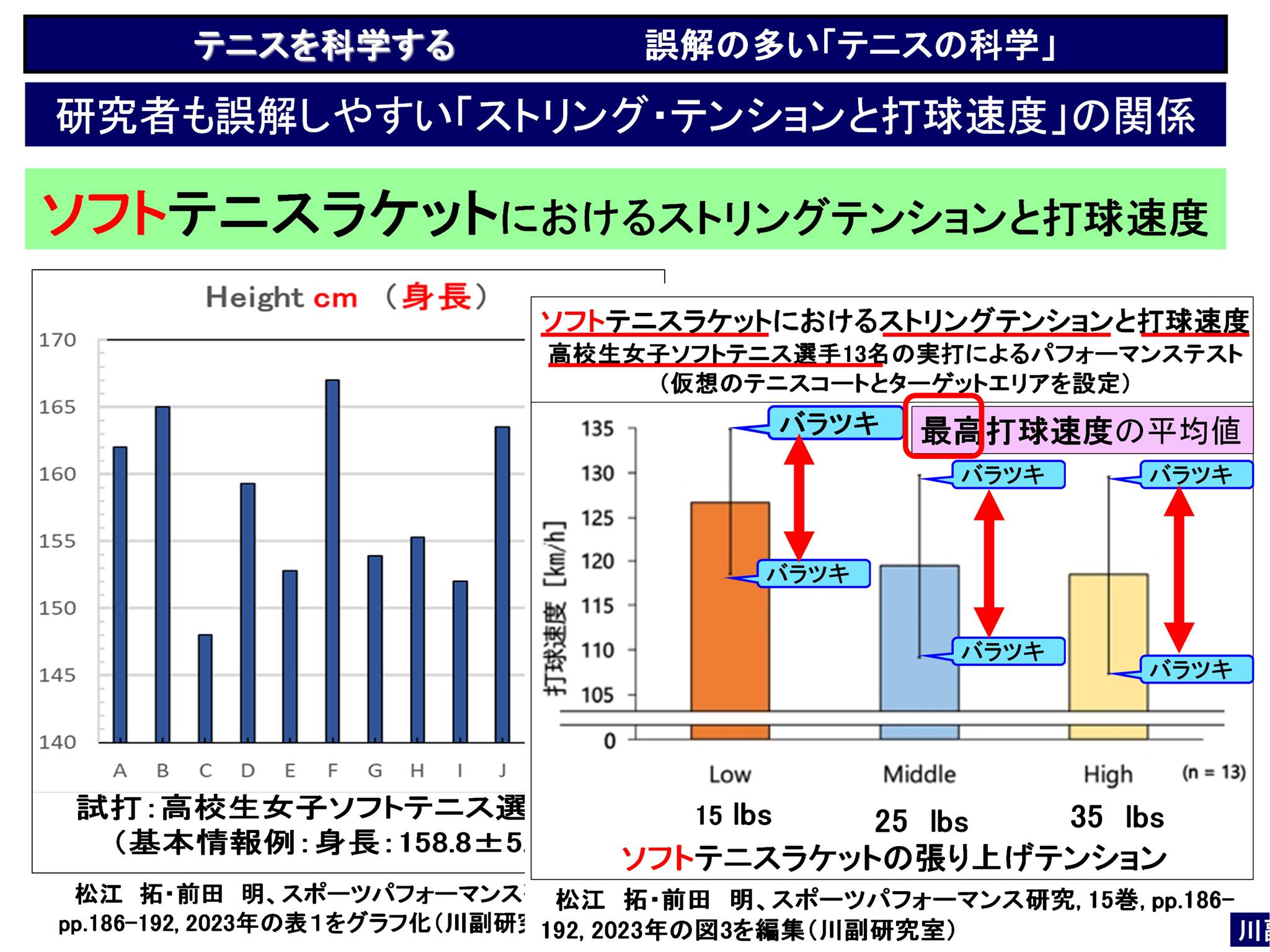 引用文献:ソフトテニスラケットにおけるストリングテンションの違いが打球速度および打球コントロールに及ぼす影響、松江 拓, 前田 明,スポーツパフォーマンス研究, 2023年、15巻 pp. 186-192.