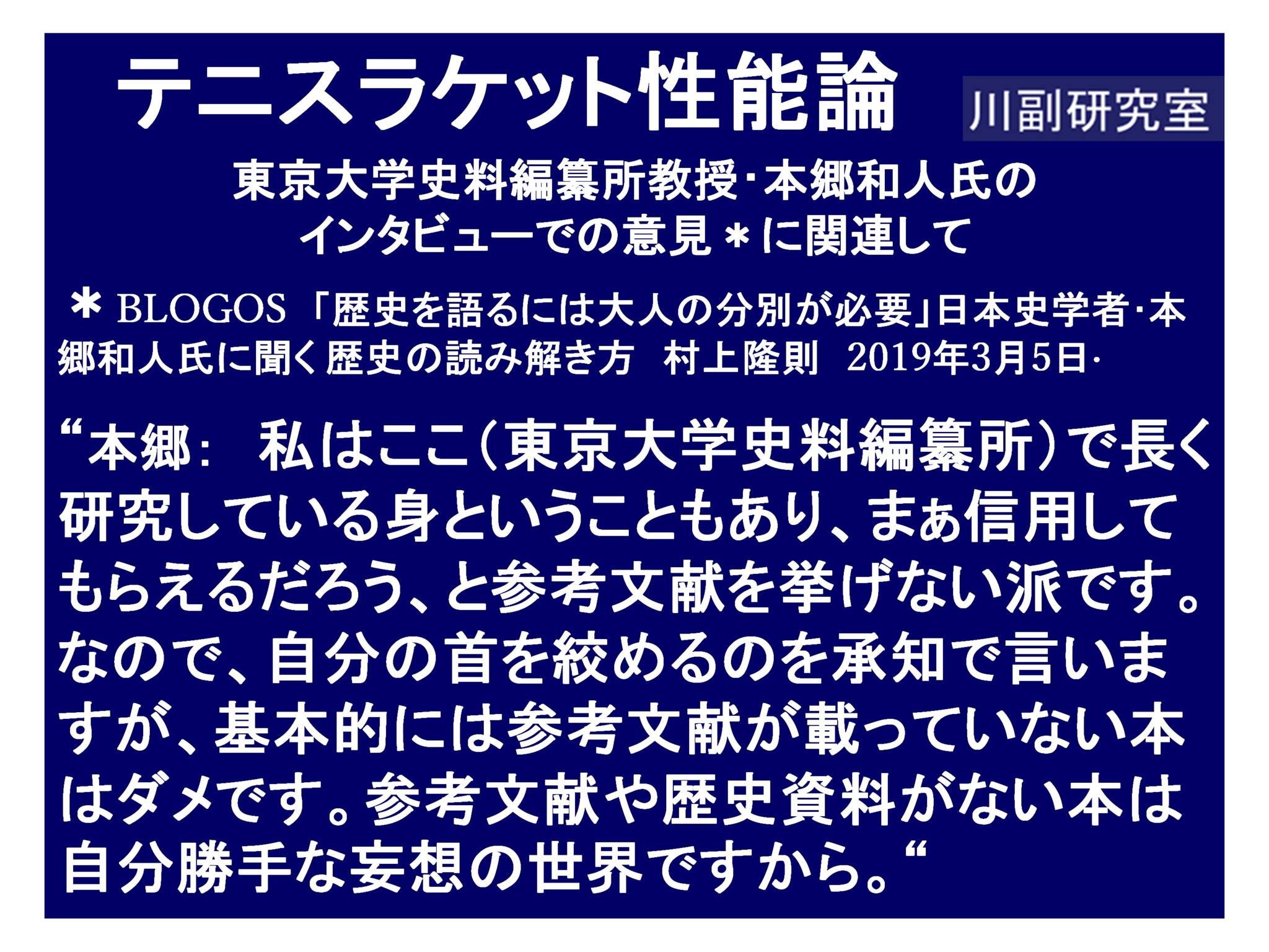 “本郷: 参考文献や歴史資料がない本は自分勝手な妄想の世界ですから。“*